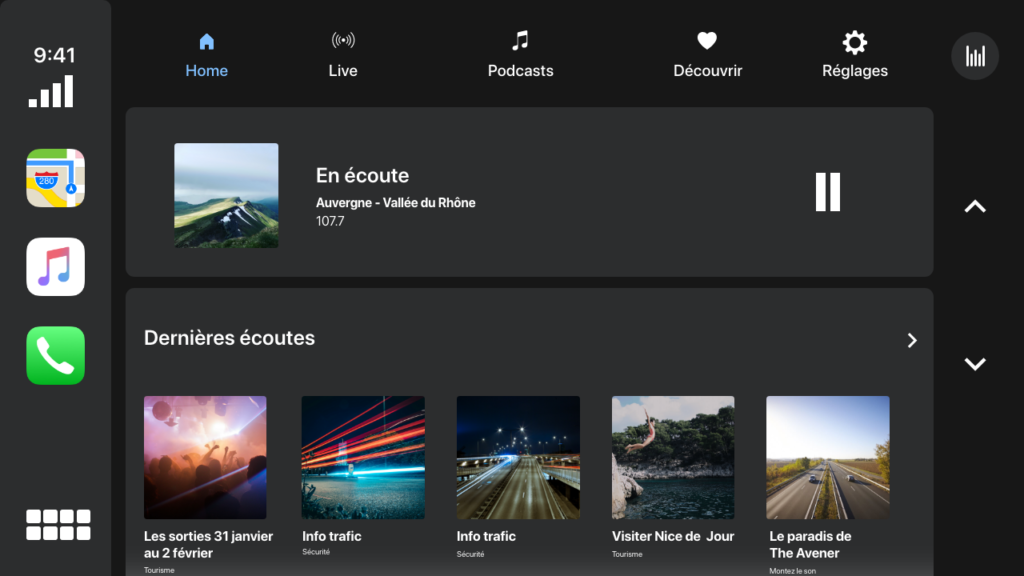 Nous avons développé une application CarPlay dont l’objectif est d’améliorer l’accessibilité et la convivialité de l’expérience musicale en voiture, un divertissement automobile traditionnel, en le transformant en une solution numérique moderne.
