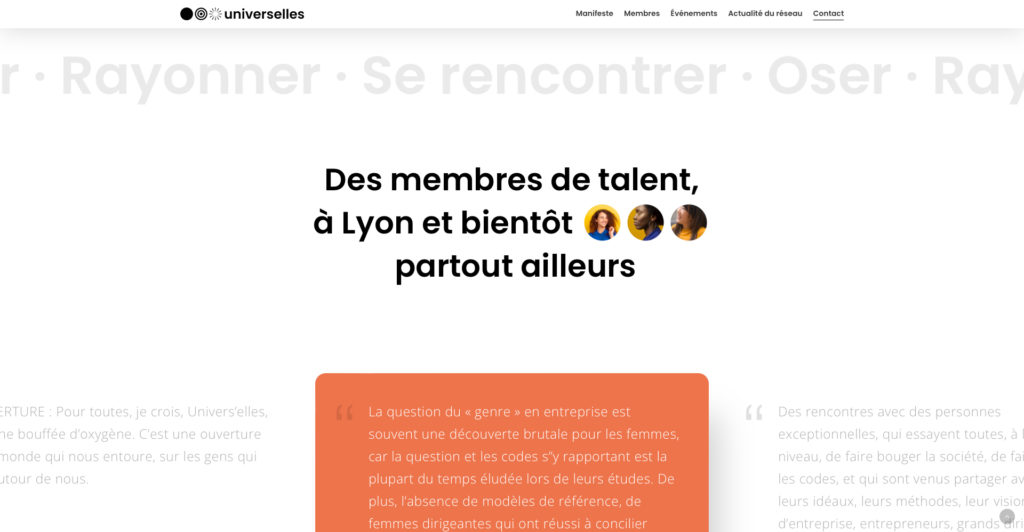 Universelles est le premier réseau pour les femmes professionnelles à Lyon et en France. Le but du réseau est d’aider les femmes actives à s’épanouir et à s’enrichir, autant sur plan professionnel que personnel à travers des réunions régulières tous les mois, le tout se déroule dans une ambiance conviviale et bienveillante.